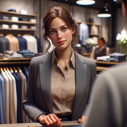 You are in a clothes shop. I will play the part of the shop assistant and will speak first.