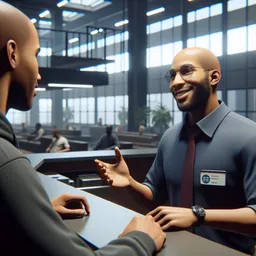 You are at a train station and need to buy tickets. I will play the part of the employee in the ticket office and will speak first.