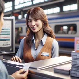 You are in a train station buying tickets. I will play the part of an employee and will speak first.