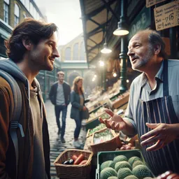 You are visiting a bustling London market for the first time, and Jeremy is showing you around. He asks about your preferences and guides you through the unique items available.