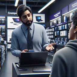 You are at an electronics store. You want to buy a new laptop. I am the store assistant. I will speak first.