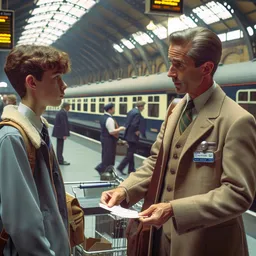 You are at a train station. You want to buy tickets for a train. I am the ticket assistant. I will speak first. you are 15 years old